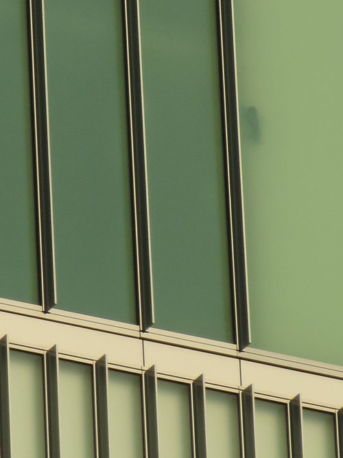 The curtain wall concept accommodated for the discordant rhythm created by the different programmatic requirements of each of the different schools housed vertically. Three different widths of curtain wall panels are used accordingly to accommodate for the interior partitions perpendicularly projecting onto the facade. The result is a seemingly randomized rhythm that responds to the interior of the building.